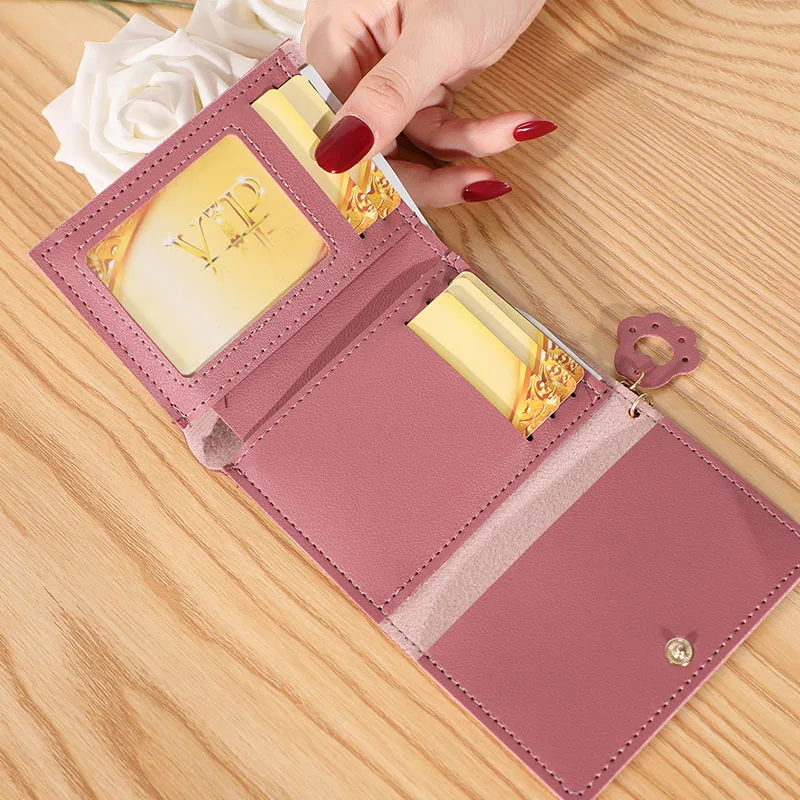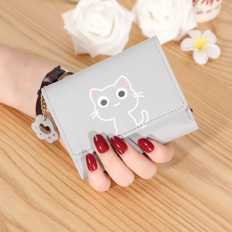 Women’s Cute Cat Wallet Female Small Short PU Leather Purse Ladies Card Holder Money Bag Hasp Keychain Fashion Wallet Girls Gift